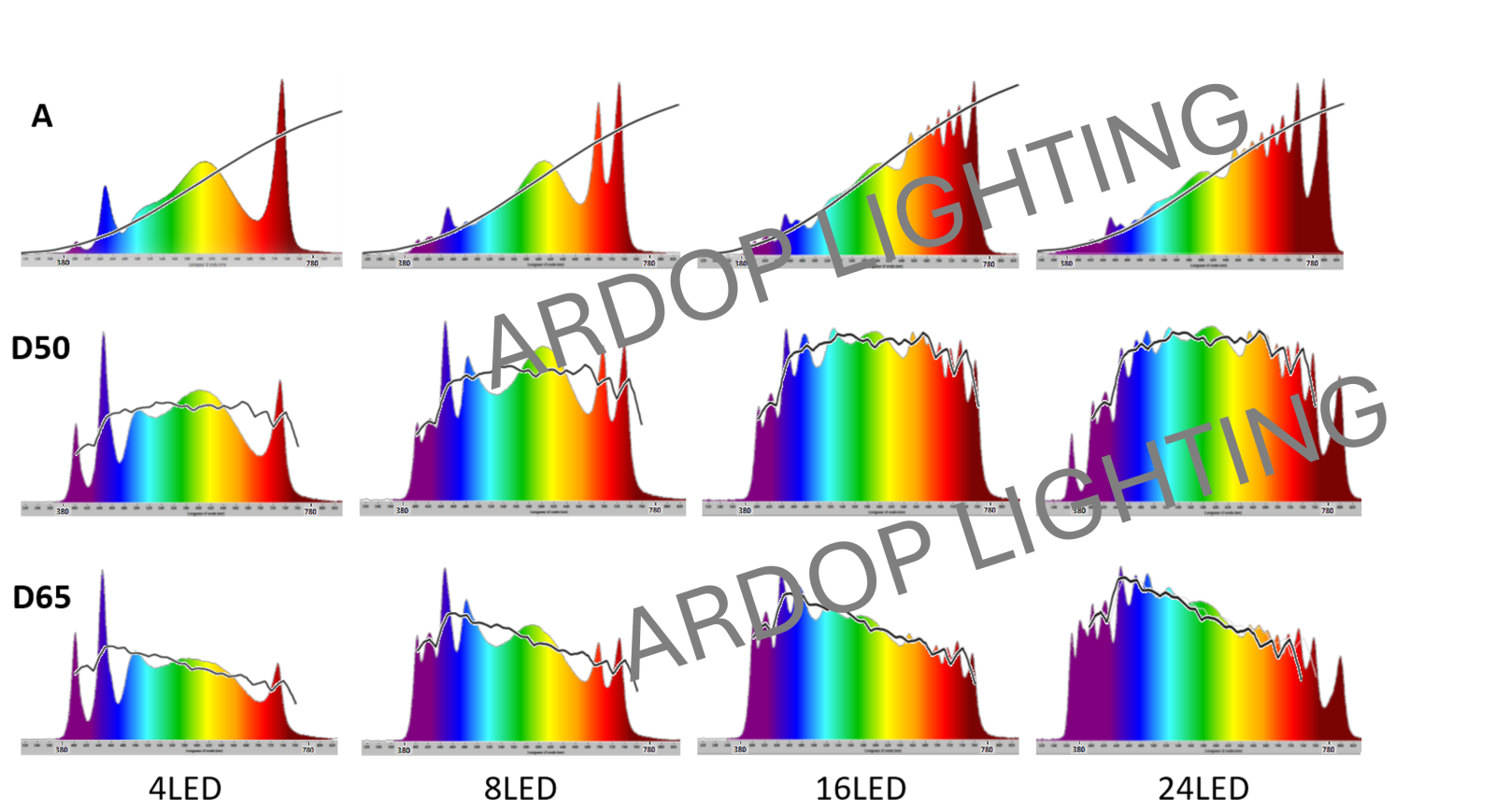 La technologie LED développée par ARDOP LIGHTING permet une simulation parfaite de la lumière du jour (D50 ou D65), mais aussi des éclairages spécifiques aux points de vente pour garantir une harmonie totale sous tous les angles.