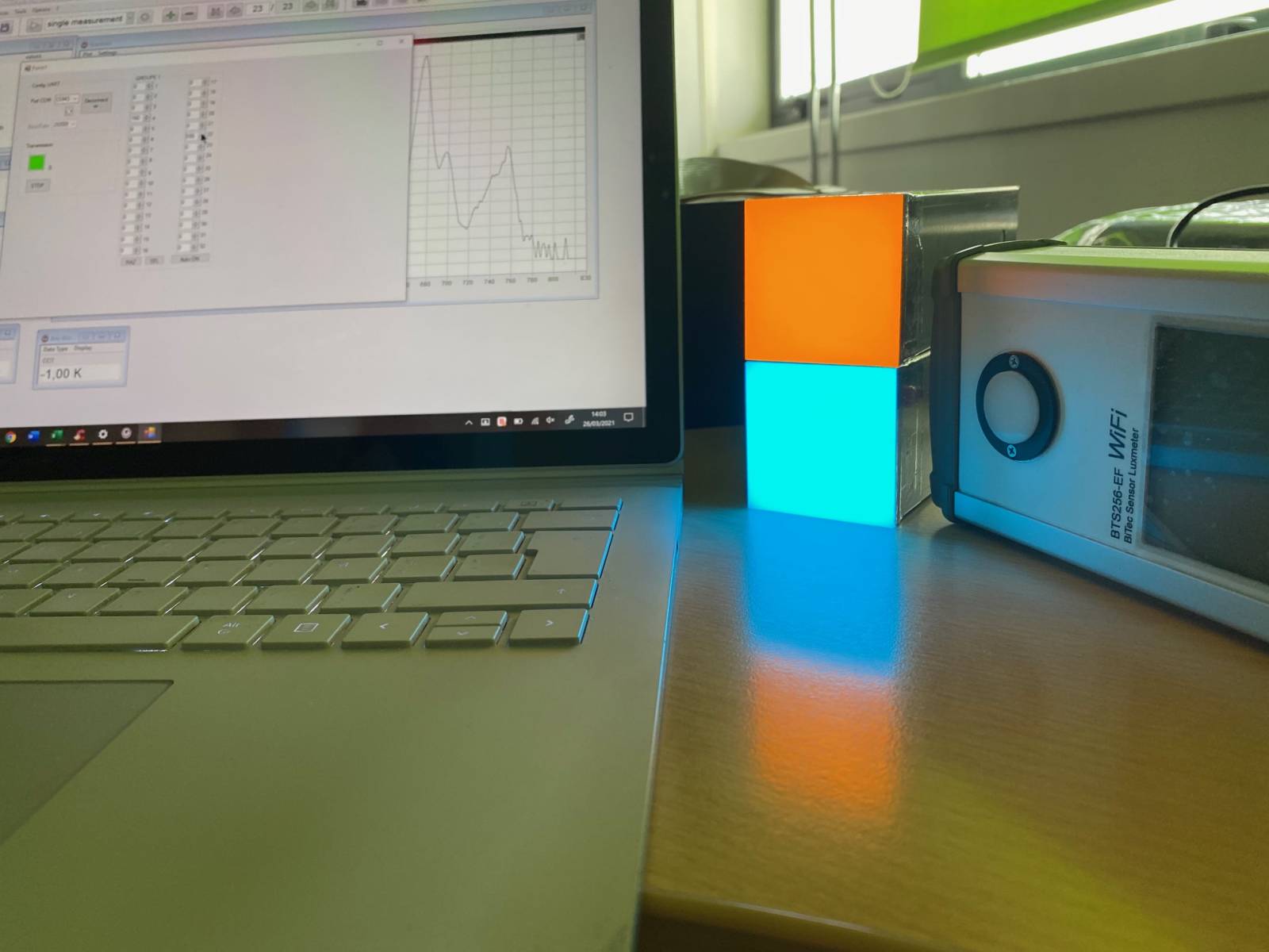 Nous pouvons simuler et générer grâce à la LED, différentes phases de la lumière du jour, et fournir des illuminants types A, B, C, TL84, ainsi que des D50, D55, D65, D75, aux températures de couleur voisines de 5004, 5504, 6504 et 7504K respectivement.